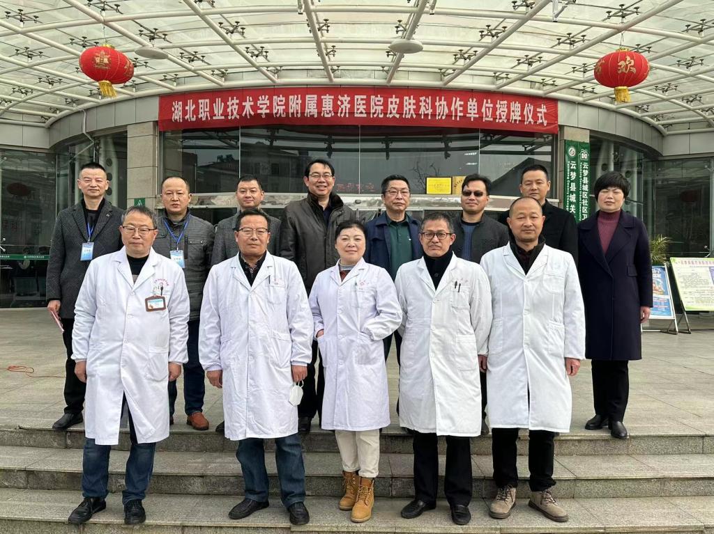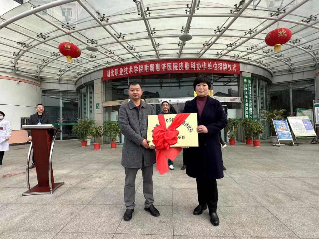 期间,双方现场签订了“建立医联体合作协议书”,共同为“湖北职业技术学院附属惠济医院皮肤科协作单位”揭牌。签约授牌仪式后,双方共同举行了义诊活动,为前来看皮肤病的老百姓免费问诊,送医送药,进行健康宣教、用药指导,现场就诊近百余人次,免费发放药品共计4000余元。