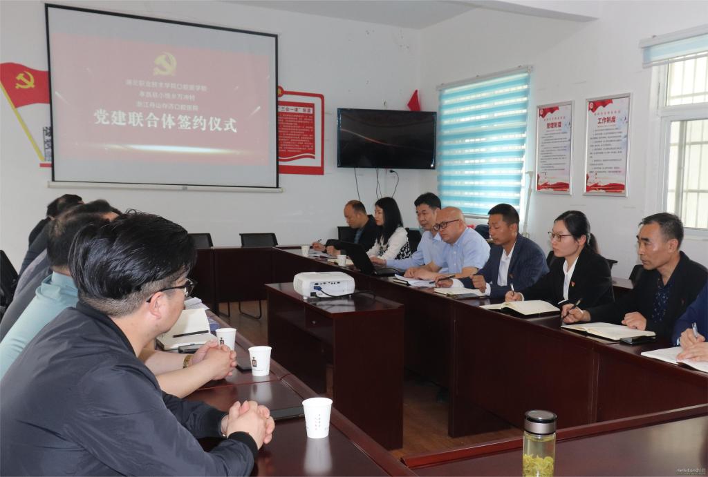 (本网讯 吴建桥 吴逸华)4月14日,口腔医学院党总支、孝昌县小悟乡万冲村党支部及浙江舟山存济口腔医院党支部在万冲村堂群服务中心举行校地企党建联合体签约仪式,小悟乡党委委员、副乡长刘颖主持活动。
