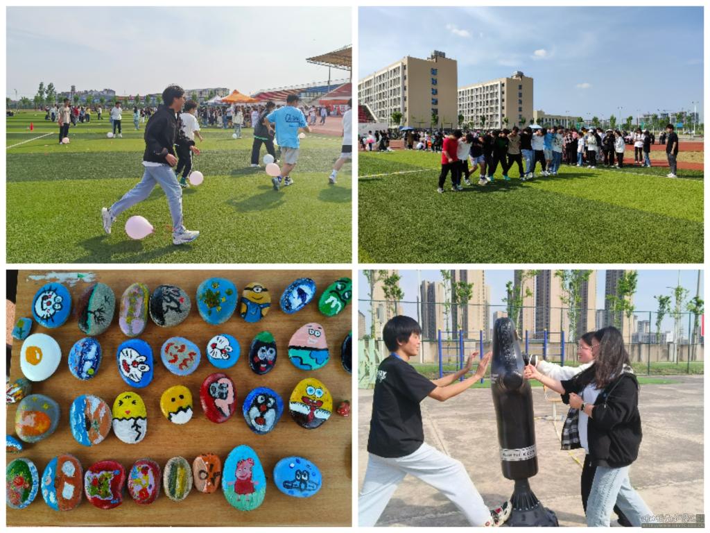 此次活动是学校“强校有我·心理有你”大学生心理文化节的系列活动之一。共设置了“和烦恼说拜拜”“抢踩好运”“减压石头画”“投壶”“同心鼓”“双龙戏珠”“搭桥过河”“忙上加忙”“背夹气球”“多人多足”等十个项目,参赛选手积极踊跃,现场热闹非凡,充满欢声笑语,展现出青春的活力和风采。本次心理趣味运动会,不仅让同学们放飞心情,舒缓压力,也锻炼了同学们的团队协作能力,增进了同学之间的友谊,培养了同学们乐观向上的生活态度。