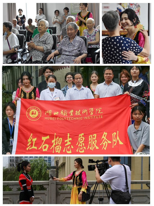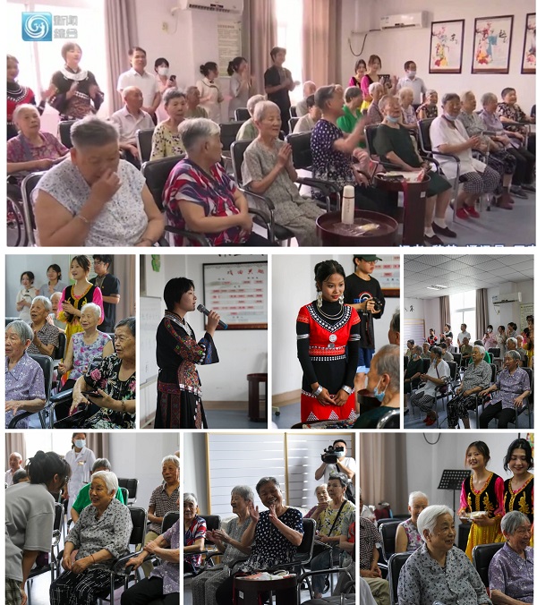 (本网讯 黄璐 熊元焕 唐熙隆 )6月22日,校红石榴志愿服务队主席熊文文与团队成员一道,来到孝感市社会福利与医疗康复中心,为老人们送去了绿豆糕、新型热干面等一批生活物资,志愿者为老人理发,与老人们亲切交流,民族学生展示了端午文化和文艺节目,老人们与志愿者同唱红色经典曲目,度过了温馨、安康的端午佳节。