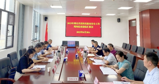 (本网讯 黄文军)6月28日,湖北省高校实验室安全现场检查工作专家组一行5人,来我校开展实验室安全现场检查。检查组通过听汇报、查资料、看现场,同相关负责人进行现场交流等方式,就学校实验室安全工作进行了系统检查。
