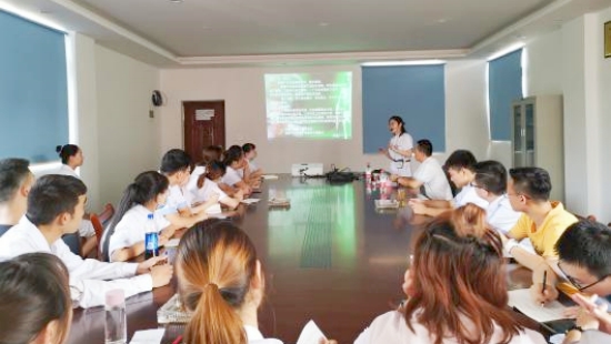 (图2 学生在附属惠济医院口腔医学中心与医护人员开展义齿设计研讨)