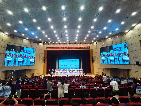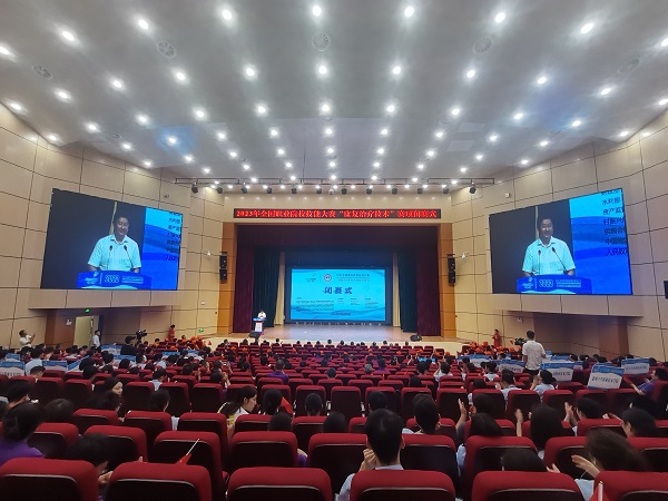 (本网讯 黄璐 夏风 龚洪浪 龚瑾 杨毅 熊元焕 黄文军 石文亮 唐熙隆)7月30日,2023年全国职业院校技能大赛(高职组)康复治疗技术赛项闭赛式在南校区崇德礼堂隆重举行。教育部大赛办监督仲裁员杨博,湖北赛区组委会委员、湖北省教育厅二级巡视员何泽云,中共孝感市委常委、宣传部长吴琼,赛项执委会副主任、中国康复医学会康复治疗专业委员会名誉主任委员陈文华,赛项裁判长、浙江中医药大学附属康复医院康复医学研究中心主任陈健尔,赛项监督仲裁长谭燕泉,赛项专家组组长李丽英,湖北省教育厅职成处副处长张兵,全体校领导等出席了闭赛式,53支参赛代表队领队、指导老师、选手等400余人线下参加闭赛式。闭赛式通过二维码(链接)、APP、抖音号、视频号面向全国全程直播。校长郭沙主持闭赛式。