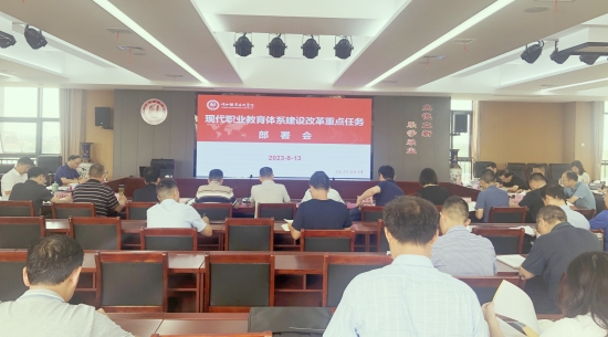 (本网讯 肖仁 )8月13日上午,学校召开现代职业教育体系建设改革重点任务部署会,发展规划处、教务处、对外合作交流、信息化中心等职能部门的负责人及副处长(副主任),各二级学院和医学基础部的负责人及分管常规教学与实践教学工作的副院长(副主任)参会。会议由副校长胡昌杰主持,校长郭沙出席会议并提工作要求。