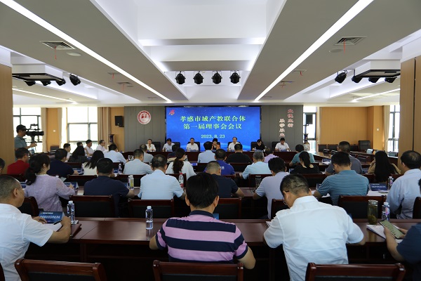 (本网讯 王光耀 吴文芳 黄璐)8月23日下午,孝感市域产教联合体第一届理事会在我校南校区图新大楼6楼召开。孝感市人民政府副市长吴婕等出席会议,我校领导郭国文、郭沙、白梦清,湖北工程学院负责人,市高新区管委会主要负责人,中国航天三江集团有限公司、中广核新能源(湖北)分公司、九州通医药集团股份有限公司等12家企业负责人,市教育局、市发改委、市科技局、市经信局、市财政局、市人社局、市税务局等负责人,全市中等职业学校校长等参加会议,共同见证孝感市域产教联合体发展新阶段。我校校长郭沙主持会议。