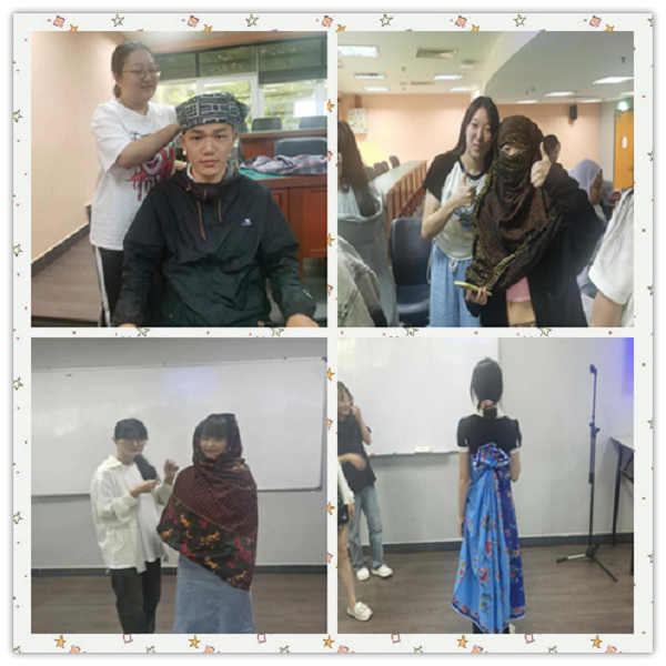 8月25日,同学们在马来亚大学体验创意思维课。林老师给每个小组一块巴迪布,进行发散创意思维,设想四种穿戴方式。同学们分成几个小组热烈讨论,团队合作将巴迪布折叠成不同的形状,制作成帽子、裙子、披肩等,感受马来西亚传统服饰的魅力。