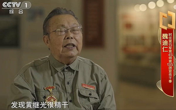 (图片说明:2023年9月30日上午魏迪仁在CCTV-1《等着我》栏目讲述黄继光故事)