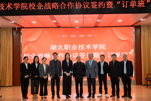 (本网讯 王丹 戴卓 马江浩 李蓓蕾)10 月17日,湖北职业技术学院与华强方特(孝感)文化科技有限公司、万豪国际集团校企战略合作协议签约暨“订单班”揭牌仪式在西区文博馆学术报告厅举行。武汉卓尔万豪酒店总经理高明、万豪国际集团校企合作华中区代表杨骏、华强方特(孝感)文化科技有限公司人力资源部部长万俊涛,我校党委委员、副校长白梦清等出席,教务处、对外合作交流处、财经与旅游学院负责人及订单班学生等共同见证校企携手、开启新程的重要时刻。